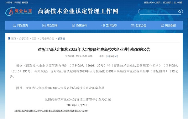 2023年12月28日,全國(guó)高新技術(shù)企業(yè)認(rèn)定管理工作領(lǐng)導(dǎo)小組辦公室發(fā)布《對(duì)浙江省認(rèn)定機(jī)構(gòu)2023年認(rèn)定報(bào)備的高新技術(shù)企業(yè)進(jìn)行備案的公告》,中國(guó)能源工程集團(tuán)有限公司(以下簡(jiǎn)稱(chēng)“中國(guó)能源工程集團(tuán)”)所屬中清能源(杭州) 有限公司...
